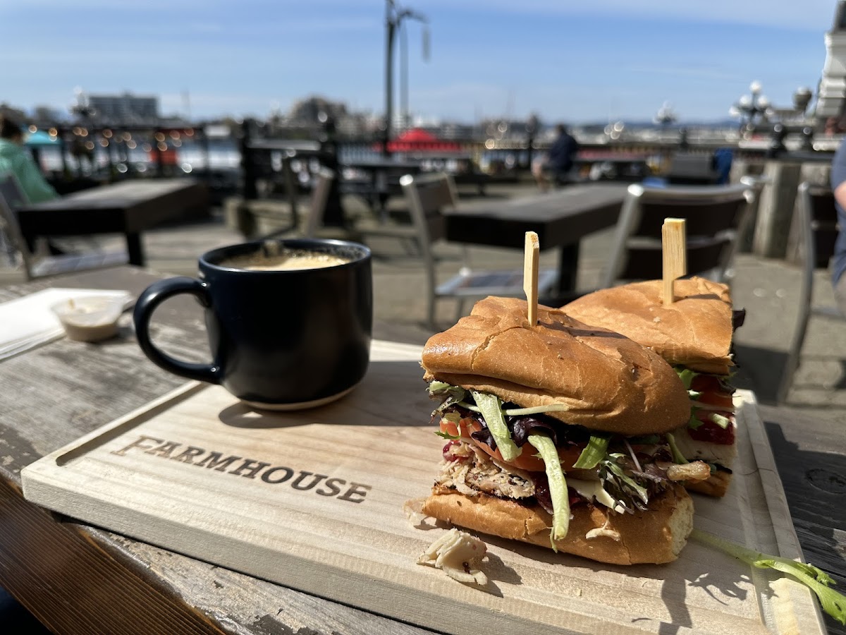 I loved my experience here! Cute little place with friendly staff and great service. My oatmilk latte was amazing. Very smooth. I had the turkey club sandwich, which was a delight. I usually don’t like cranberry sauce, but I forgot to ask for it without the cranberry sauce, but it turned out to be a happy accident. Because it wasn’t too sweet and really matched the flavours of the sandwich. And I actually enjoyed this flavour profile a lot! The patio has a view of the water and seems like it would be amazing in the summer. Or if you can handle the cold. I definitely recommend that you give this place a try. Especially if you are a sandwich lover